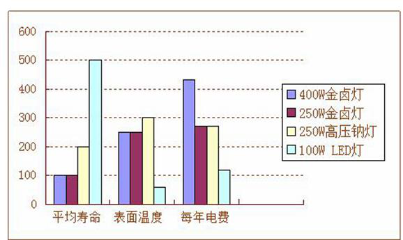 可以實(shí)現(xiàn)的。下面是高壓鈉燈、金鹵燈 和 LED 燈的比較(以 3000 盞燈為例,平均每天使用 10 小時(shí),電費(fèi) 1 元/度)。