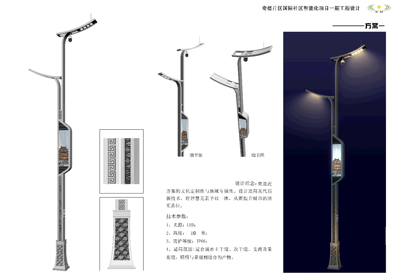 1.智慧燈桿功能模塊化:以智慧照明系統(tǒng)為基礎(chǔ)功能,可選配備WIFI熱點覆蓋功能、攝像頭模塊、充電樁功能、4G/5G信號覆蓋功能、物聯(lián)網(wǎng)RFID以及信息發(fā)布功能等。燈桿采用模塊化設(shè)計,各功能模塊相互獨立,預(yù)留安裝孔位、供電模塊、傳輸連接模塊等。可以根據(jù)客戶需要,按需組合、靈活配置,以適應(yīng)不同的使用場景。